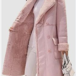 Small Pink Faux Lambswool Pea Coat Korean Inspired Lightweight Trench Jacket$15Peculiar, MO