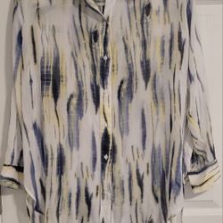 DKNY Sheer Medium Metallic Print Chiffon Button-Up Shirt Long Sleeve White Blue$10Peculiar, MO