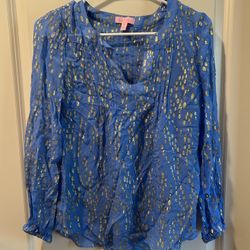 Lilly Pulitzer blue silk Colby blouse with gold pattern size XS metallic$70Riverside, MO