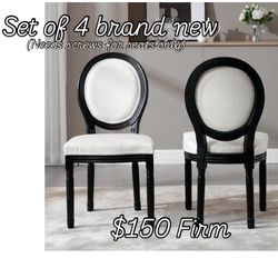 Set of 4 Black vintage style dining room chairs with cream colored cushions$150Blue Springs, MO