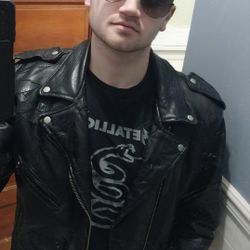 Vintage 90s Diamond Plate Buffalo Leather Motorcycle Jacket Black Quilted Biker$199Jefferson City, MO