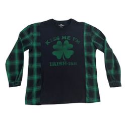Kiss Me I’m Irish-ish Four Leaf Clover Green Black Flannel Sleeve Tee Shirt XL$30Kansas City, MO