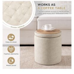 New Faux Leather Beige Round Storage Ottoman Coffee Table$40Exclsor Sprgs, MO