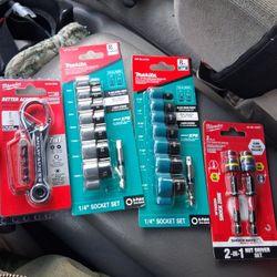 Makita 1/4 Dive Sockets, Milwaukee Mini Ratchet , & Flip Nut Driver Set$45Saint Joseph, MO