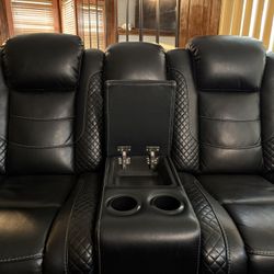 Reclining and power headrest two pieces set black leather couch with blue led lighting $1,200Kansas City, MO