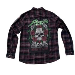 Poison (band) Red and Black Plaid Flannel Button Front Shirt Upcycled Size M$35Kansas City, MO
