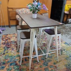 Brown And White Kitchen Table Set with 4 Stools For Sale