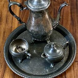 1881 Rogers Silverplate Tea & Coffee Set w Tray, Creamer & Sugar Bowl$29Weldon Spring, MO