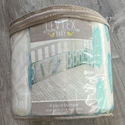 Levtex Baby Aqua Blue and White Feather Knit Crib 4 Piece Bumper NWT$25St. Louis, MO
