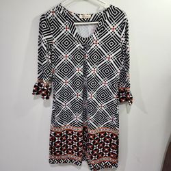 Aryeh Abstract Dress Womens S White Black Orange 1/2 Sleeve$12O'fallon, MO