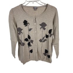 J Jill Cardigan Button-Front Crew-Neck 3/4-Sleeve Leaf Print Fall Sweater S$15Ellisville, MO