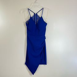 Emerald Sundae Women’s Size Small Royal Blue Spaghetti Strap Lace Back Asymmetrical Cocktail Mini Dress$15St. Louis, MO