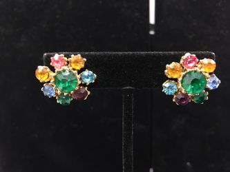 Vintage gold tone flower earrings with multi colored rhinestone$18Biloxi, MS