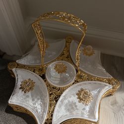 Vintage-Style Gold & Glass Serving Dish – 5 Compartments$200Gulfport, MS
