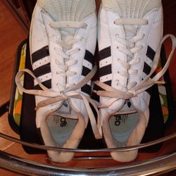 ADIDAS-white & black striped leather lace up athletic shoes$10Bay St. Louis, MS