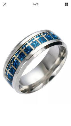 Blue Carbon Fiber Gold Cross Silver Ring$15Madison, MS