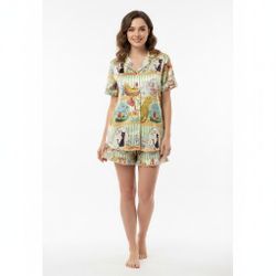 Womens Satin Pajama Set Size Large Whimsical Animal Print Cottagecore Sleepwear$32Meridian, MS