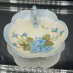 Vintage Porcelain Round Tidbit Tray or Nut Dish Porcelain with Handle and artist signed$12Booneville, MS