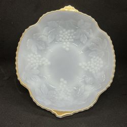 VTG Anchor Hocking Milk Glass Raised Bowl with Gold Trim Grape Leaves Design$20Booneville, MS