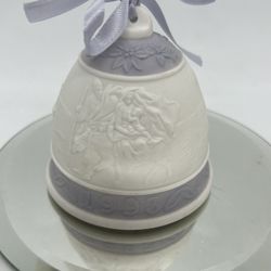 VINTAGE LLADRO BISQUE 1993 CHRISTMAS BELL MARY HOLDING BABY ON DONKEY ORNAMENT. $30Booneville, MS