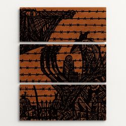 Sky Rat Dark Abstract Barbed Wire Canvas Wall Art Triptych Original Art Print $375Asheville, NC