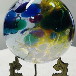 Hand Blown Art Glass Orb "Witch Ball" Multicolored Ornament Sun Catcher 5.5”$25Mars Hill, NC