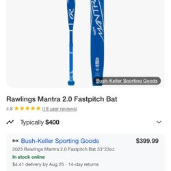 Pro Softball Bat Rawlings Mantra 2.0 Fast Pitch$250Fletcher, NC