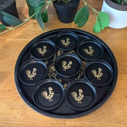 Vintage MCM (1950’s) Metal Rooster Serving Tray with Eight Matching Coasters$30Hendersonville, NC