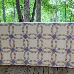 LARGE Antique Double Wedding Ring Quilt From The 1900s, Hand-Sewn With Scalloped Edges (96" X 84")$101Waynesville, NC