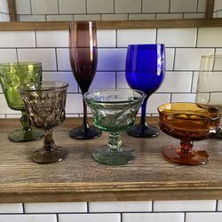 Vintage Colored Glass Goblets Assorted Stemmed Wine Glasses Rainbow Mismatched$42Zebulon, NC