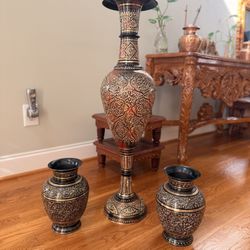 Vintage Brass Multicolor Floral Etched Design Black And Gold Indian Vase Set$250Raleigh, NC