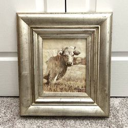 Fine Art America Wood Framed Authentic 10 x 8 Lady Charolais Watercolor Stick Conté Pencil And Acrylic On Paper Mounted On Rag Board By Michael Donner$150Chapel Hill, NC