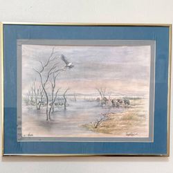 Vintage Framed Watercolor Painting Of African Kariba Landscape Signed By Artist Crystal Wynn$120Chapel Hill, NC