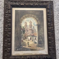 Vintage 1940 Signed Watercolor in Heavy Hand-Carved Wood Frame$500Cary, NC