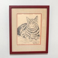Antique Framed Authentic Cortest Proof Original Etching Artwork Smokey Cat By Artist Linda Lloyd ‘75$100Chapel Hill, NC
