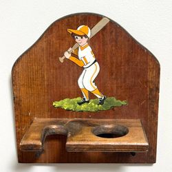 Antique Wood Kids Baseball Display Rack With Bat Slot Ball Holder Hanging Pegs For Cap And Glove$30Chapel Hill, NC