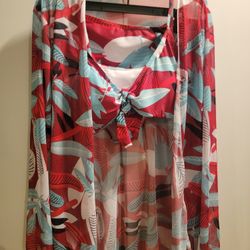 Plus Size Plant Print Knot Front Bikini Set With Kimono Summer Beach Size 2XL$20Garner, NC
