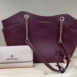 Michael Kors Burgundy Tote Bag and Tan TriFold Wallet$120Garner, NC
