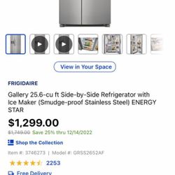 Frigidaire Refrigerator Side By Side$1,000Zebulon, NC