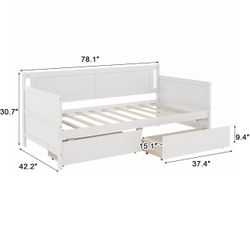 Twin Daybed with Pop Up Trundle, Solid Wood Daybed with Trundle and 2 Storage Drawers, Space-Saving Camas para Niñas, Multi-Functional Sofa Bed for Be$200Durham, NC