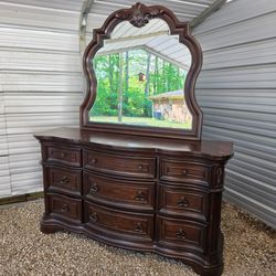 Dark Cherry Wood Dresser with Mirror, 9 Drawers, Ornate Traditional Style$450Durham, NC