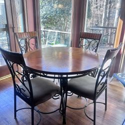 Gorgeous Solid Wooden Inlay Kitchen Table and Four Chairs Dinette Oak Wrought Iron$400Raleigh, NC