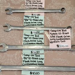 Snap-On 12 pt SAE Flank Drive Long Combination Wrenches$200Clayton, NC