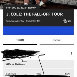 J Cole Floor Seats Tickets 7/10$1,600Concord, NC