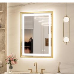 Keonjiinn 24 x 32 Inch LED Bathroom Mirror with Frontlit & Backlit, Gold Lighted Bathroom Vanity Mirror, Metal Framed Beveled Edge, UL Listed LED Driv$65Concord, NC