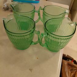 Vtg Jeanette HONEYCOMB Pressed Glass Handled Pitcher Green 5"$65Charlotte, NC
