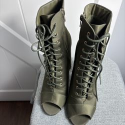 Liliana Vanguard Peep Toe Lace Up. Olive Womens Bootie Size 10 Heel 4 1/2$39Charlotte, NC