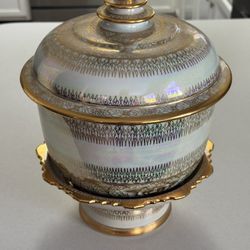 Vintage Royal Thai Porcelain Hand Painted Gold Ceramic Lidded Bowl Vase Thailand$50Charlotte, NC