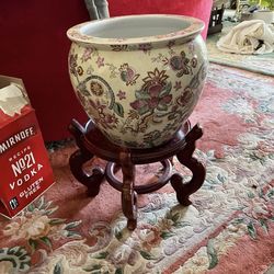 Large Big Pot Ceramic With Wooden Stand Base $250Concord, NC