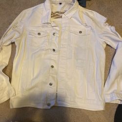 White distressed jean jacket$20Kannapolis, NC